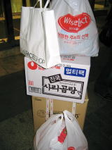 真ん中はこの日の買い物。ダンボール二箱プラス袋満杯。