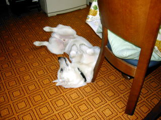 もちろん診察が終わったら急に元気に暴れまわっていました。(お外でね・・・) |