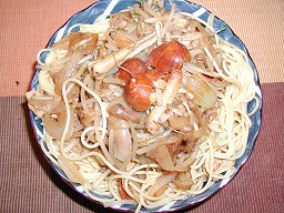 | 戦闘13日目〜今日はウシは脇役、ごめんね・・・ウシ まずは前編をお読みください・・・ さて、大漁のコガネタケちゃんを懐にいそいそと帰途に着きます コガネタケはバター炒めが最高!ここはやはり「キノコスパゲッティしょう油わさび風味」でしょう 野菜と炒めてスパゲッティにからめれば・・・もうこれは絶対に至福のひと時をモノにできる! スーパーに立ち寄り、タマネギともやしを買い込みます もちろん、牛肉も忘れちゃいけません 「熊本黒毛和牛モモ切り落とし」100g128円もカゴにいれ、 さあ、ダッシュで家路を急ぎます 玄関から台所へ直行、新聞紙に大事にくるんだコガネタケちゃんを取り出します つん、と鼻をつく毒毒の、いや、独特のかび臭さ・・・この匂いがいいんです! さあ、オッチャンがええようにしたるさかいな・・・うひひひひひ 1、コガネタケの石突を落とし、洗って一口大に手で裂きちぎります 2、野菜を刻み、タマネギからバターで炒めます 3、タマネギがキツネ色になったところでコガネタケちゃん、お出ましです 4、牛肉、もやしの順にいため、コショウ、しょう油で味を調えます 5、おつゆごと茹でたスパゲッティにからめ、わさびをトッピング ![]() ・・・あとは食うべし食うべし食うべし! コガネタケちゃんの毒毒の、もとい独特の香りとコリコリとした歯ごたえがたまりません・・・ ホンマに美味しいです、ウマイです、お願い信じてプリーズ! ウソだと思うみなさん、一度食べてみりゃ判ります! どうしても食べてみたい、という方は3太郎までメール下さい(こねぇよ) ちなみに現在食後1時間半、身体に異常はありません 本日の戦果 コガネタケちゃん、キミはサイコーだ! 黒毛和牛ちゃんもよかったよ(*^.^*)エヘッ |