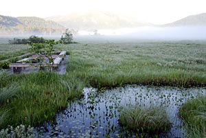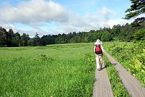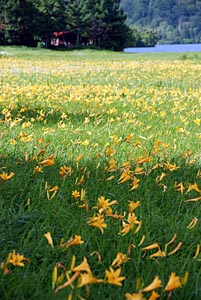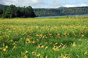 ![]() | この時期尾瀬ヶ原と言えば何といっても「ニッコウキスゲ」 であるが、長次郎小屋の近くまで来た途端見渡す限りの ニッコウキスゲの大群落に出くわした。↑→ しかし今年はこれでも例年の1/2〜1/3位の咲き具合だと か?・・・ | ![]() |