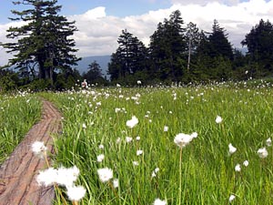![]() | この時期もう一つの 大群落に出くわした のが「ワタスゲ」で あるが、こちらの 方は今年は大変 な豊作とか?・・・ 至る所で良く茂って いた。⇔ | ![]() |