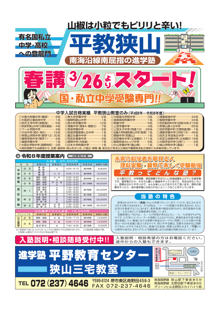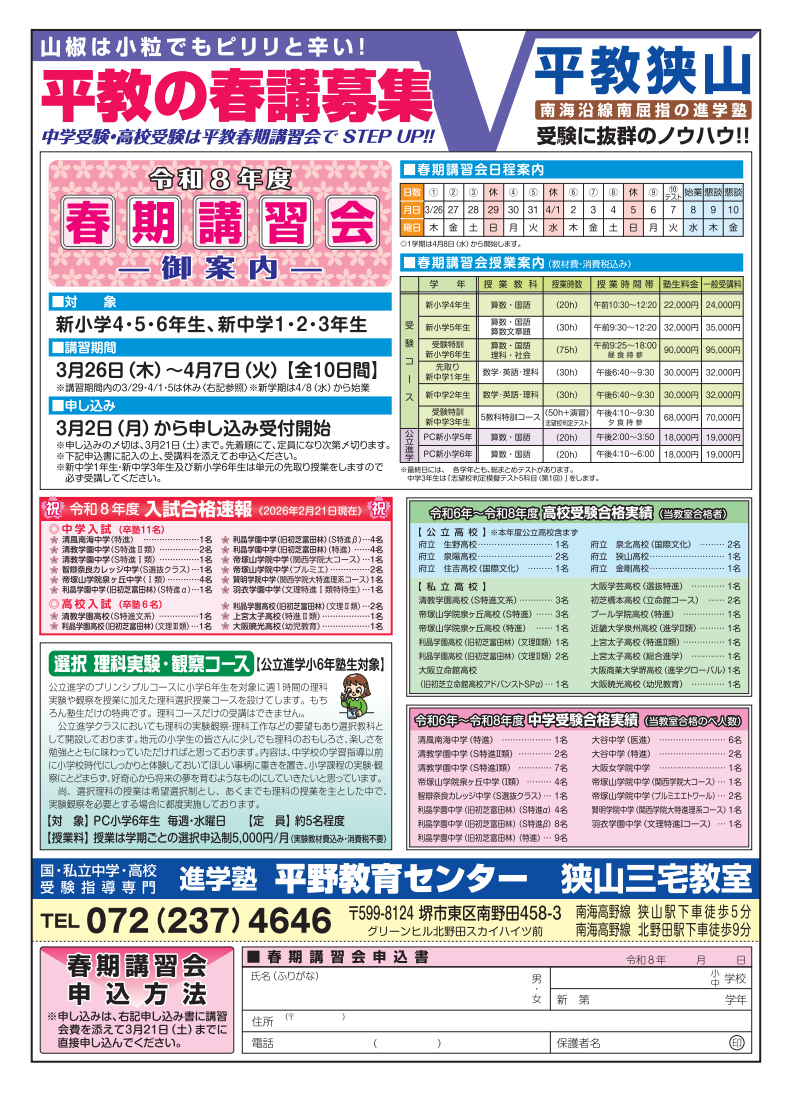 申し込み時はチラシの下部のキリトリ線で切り取り申込書を記入してお持ちください。 (チラシは塾にもございますので塾内にて記入してもらっても大丈夫です。) 詳細について不明な点などございましたら、お気軽に塾へお問い合わせください。