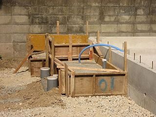 玄関ポーチと、玄関及び納戸の土間部分です。 これにて基礎工事は終了だそうです。明日からいよいよ建て方工事に移るそうです。最初のうちは、日々変化するのを楽しめるかもしれません。