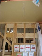 玄関から天井を撮影しました。玄関ホール・和室にも天井が付いていました。2階はまだまだです。
