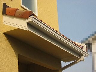 玄関の庇です。ここにも樋があるのかと感じましたが、無いと雨が降ったときにダラダラで、大変ですよね。