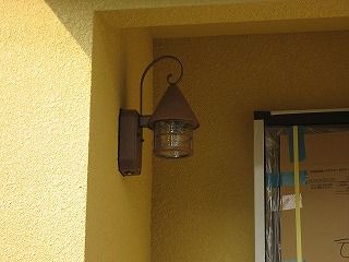 玄関のライトです。側面よりも奥(扉の横)に付けた方が良かったかな?
