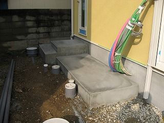 エコウィルを置くコンクリ台と、勝手口です。エコウィルが新しくなる(マイナーチェンジ?)との事で、10月20日以降に設置されるとの事です。