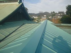 この度の工事では軽量で見た目もすっきりとした「金属葺」に改修したので