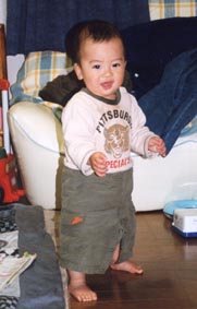 2003.4.14 ひとりで立つのもばっちりです。 なんかものを持ってたつほうが好きみたい。 |