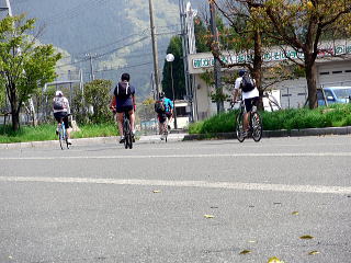 不安がある女性メンバーと屈強な男どもとのハンデをつけた。女性陣+A1は草津まで車に自転車を