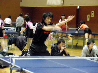 | シェイクハンド | 3−1 | 武蔵クラブA | 先の全日本社会人ではペアを組んだ奥野選手との対戦。がくのドライブをじっくりブロックでしのいでから反撃されるパターンと3球目強打を浴びるパターンで上手く攻められなかなか優位に立てない。なんとかセットオールに持ち込むも最後はフォアストレートに強打され万事休す。 なかなかカット打ちをミスしてくれない浅野選手に対し、我慢の展開が続く。D.坂野のドライブボールも独特のショートで上手く合わされ苦しい展開。しかし勝負どころでのサーブやわずかな安定感の差で辛うじて逃げ切った。 動けないA1のバック前とバック奥に押し込まれるターンは極上の失点率を誇ったがその他のターンでは優位に試合を進めストレートで勝利。相変わらずがくの両ハンドは冴え、A1は動かない。 両ハンド強打の坂野選手に対し、合わせるプレーが多くなかなか押し切れない。置きにいくようなボールを狙われて苦しい展開。相手のバックサイドを狙うものの、ミスを得ず強打を得るばかりでさらに苦戦。最後の最後に若干積極的に打ったボールが決まりギリギリ過ぎる勝利。 |