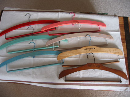 子供の頃から何気なく使っていた 木のハンガー達 気がつくとずいぶん古めかしくいい感じにはげてきてもう宝物になってしまいました。古臭い色が何とも言えなくて自慢のハンガーくん達です。ホント物を大事にずーっと使い続けると言うのはすばらしい事なんですね。当時は、何て事のなかった物が時を経て思い出とともにかけがえのない大事な宝物に変わっていくのですから 他にも子供の頃からずっと使ってる物達が我家では、現役で活躍してくれてます。