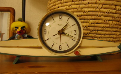 宝物のひとつの時計です。おばあちゃんのお家にあったのをもらった すごーく古い手巻きの目覚まし時計なんです。こんなに古い時計なんですが、なんとまだちゃんと動くのです。昔の物は、きっと余計なものがついてなくてシンプルで単純なんできっと丈夫で長持ちなんでしょうね