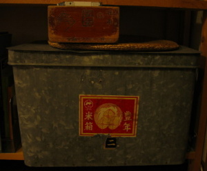 昔、私が小さかった頃は、ここにお米が入っててこの枡で計ってお米を洗ってました。もしかして私もかなり古い人間なんですね。 今は、便利なライサーがあるのでここには書類を入れて、枡にはMDが入ってます。