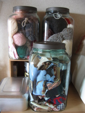 子供の頃 味付け海苔は、こんなにかわいいびんに入って売ってました。駄菓子屋さんの入れ物みたいでかわいかったので 大事にとってありました。今は、毛糸やハギレを入れてますが。ハギレを入れても かわいく見えてしまうのです。