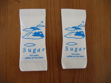 この間 国内線ですが飛行機に乗ってコーヒーを頼んだたらこんなにかわい砂糖がついてきました。なんてすっきりしててかわいいデザインなんでしょう! 私は、お砂糖は、使いませんが、よく考えたら 最近見かけるのは、スティックシュガーが多いですね 外国だと角砂糖もすごいかわいい紙に包まれてたりして 楽しみもあるのにねー 確か京都のカフェのオーナーの本にもかわいいお砂糖を集めてるって書いてあったなー 友達と旅行に行って帰ってきたららかわいいお砂糖を交換したりお土産にしたりするらしい なんか 子どもチックでいいなー