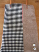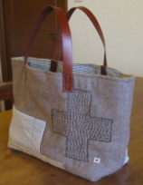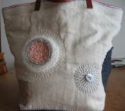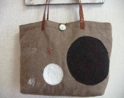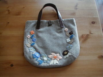 私の作ったかばんを気に入って頂いた方がおられました。それでまずは3個ほど作って、使ってもらえそうなのがないか見てもらう事にしました。 まずは、トートーです。A4がそのまま入りそうなサイズで、ウールーのあったかそうな布で作ってます。「チクチク」、「ぐるぐる」いろんな物をくっつけました。