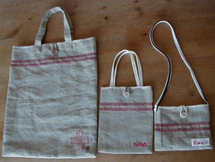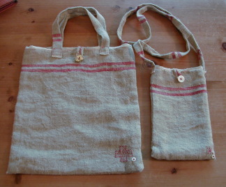 キャトルセゾンのキッチンクロスで親子バッグを作ったよ。