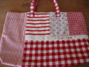 娘に前に作ったマフラーとおそろいのバッグです。ちびっちょ布を何枚つなげてポイントには、てんとう虫さんをくっつけました。