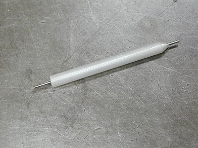 これは1ミリのステンレス丸棒でつくったノミでちまちま彫ります。 |