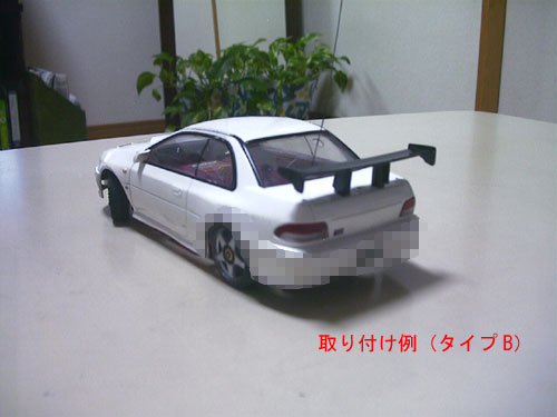 【インプレッサ装着例】これも足はカットしてません、こちらもノーマルとは雰囲気がかなり変わります、もともとの取り付け穴は塞いだ方がいいですね。
