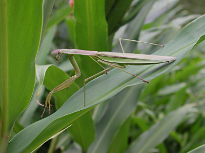 日本で最大のカマキリで猪名川町でも草むらなどでよく見られる。緑色型と褐色型がある。チョウセンカマキリによくにているがオオカマキリは後翅の付け根が紫褐色なので区別できる。チョウセンカマキリは飛べるがオオカマキリは重くて飛べない