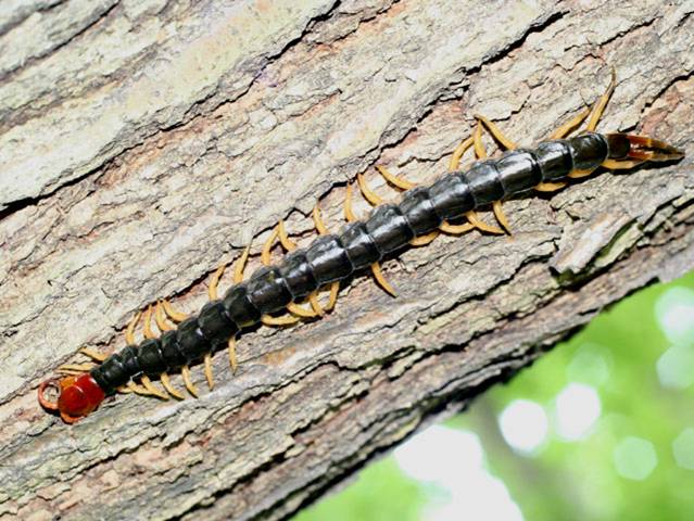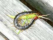 21対42本の足をもつ日本最大のムカデ。トビズムカデの毒は最強のものでかまれると非常に腫れる。漢字では鳶頭ムカデと書く。