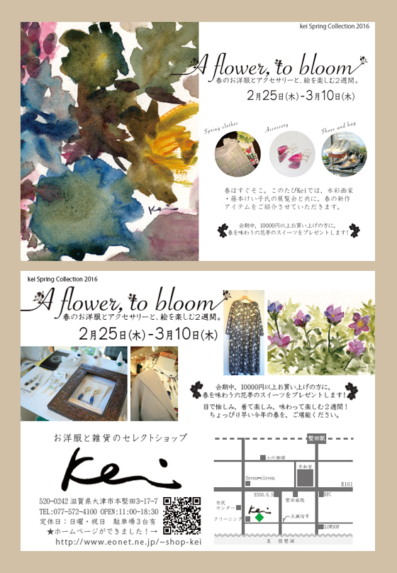 「A Flower to bloom - 春のお洋服とアクセサリーと、絵を楽しむ2週間」」2016 春