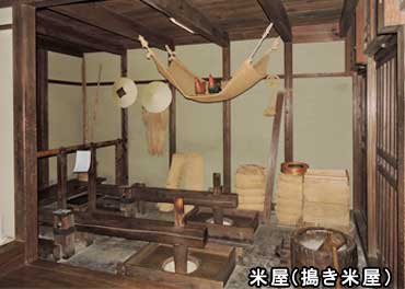 江戸庶民と白米(ご飯) ■白米食の浸透 長屋には表通りに面した「表長屋」と路地を入った「裏長屋」の2種類があった。表長屋は店舗と住居が一体となった形式で、経済力を持った上層の庶民層(町人)が住んでいた。対する裏長屋は一般庶民の住居で、裏店(うらだな)または棟割長屋などといわれる1戸3~17坪ほどの密住のくらしを余儀なくされた。9尺2間の裏長屋の広さは間口が9尺(約2.7m)、奥行きが2間(約3.6m)で、1.5畳程の土間を入れても畳6畳分の広さであった。 裏長屋住まいの庶民の台所は狭く、火口は限られており、ご飯を炊く、汁を温めるなどであった。元禄以前の初期江戸食は、雑穀や玄米を中心とする質素な食事であった。それに野菜や海藻、江戸前で漁れる魚介類が並ぶ食事であった。 江戸っ子の自慢のひとつは水道水の産湯と白米である。今まで特権階級しか食せなかった白米が元禄になると庶民にまで拡がった。 ![]() 江戸時代になると農業技術の発展や新田開発によって米の生産量が増した。江戸中期、「米将軍」と呼ばれた八代将軍の徳川吉宗が行った享保の改革は米の生産量拡大に拍車をかけ、精米技術の向上と経済の発展に伴い米を専門に扱う店が現れた。 米は幕府や大名が年貢として徴収したものの一部を売却するために「札差」「御用商人」の手を経て江戸に運び込まれた「蔵米」の他に、商活動の活発な京・大坂から「問屋商人」によって、「納屋米-なやまい」が船で江戸に大量に運ばれて来た。 江戸の人々は貧富の別なく米を入手できた。したがって江戸は「米食い都市」とよばれ、麦を混ぜて炊く階層はあったにしても「米の飯」は、江戸庶民の主食だった。 ![]() 一方、江戸時代の農民は、常日頃から米をある程度食べていたようである。ただし、日常食べていたのは米が入った「かて飯」や粥や雑炊(ぞうすい)であった。かて飯は少ないお米に稗(ひえ)などの雑穀や大根の根や葉、芋がら(里芋の茎を干したもの)、サツマイモなどの野菜を入れたものをいう。 ある農民の1日の食事は、朝はご飯の残りを小麦粉と混ぜて焼いた餅、昼は雑炊、夕食は大根と小麦粉を練った団子を汁物に入れて煮込んだ粉団子汁というものであった。 雑炊の記述として、越後国長岡藩では「(米か雑穀に)雑炊の捺方ハ大根を竪横に切り鍋へ入其内へぬか味噌入煮立。1805年(文化2)」、伊予国大淵藩では「(雑穀に)雑炊とて菜大根おしなへての野菜を味噌に煮(文化年間,1804-18)」との記録がある。 このように、江戸時代後半の農民は米と雑穀がほぼ半分づつ入った「かて飯」か粥か雑炊を日常食べていた。伊勢国の歴史書『宗国史』(18世紀前半)には、聞いた話として「百姓たちが食べた米は、春夏は砕け米、秋冬は年買に使えない劣等米である」と書かれている。 しかし、当時の米の精搗率は農村が五分程度(5分精米)、都市が六~七分であったともあり、通常米であった可能性が大きいようである。 基本的に江戸という都会に暮らす人たちと、地方に暮らす農民では流通している食材も違うので食生活は異なっている。白米を食する都市部の庶民とは違い、農民は植物の茎や山菜、豆類に至るまで、食べられるものはすべて使って食事を作った。江戸の庶民、町人よりも農民たちの生活は苦しいものだった。 ![]() 『馬子・米屋(搗(つ)きごめや)』(玄米を精米して売る米屋)/ 「職人尽絵詞」文化3年(1806年)、※江戸の「米屋」は米を仕入れて玄米のまま売っていた。それを精白して白米にするのが「搗き米屋」である。これに対して、手で搗(つ)くのを『拝み搗き』と呼んでいた。(江戸市中の搗き米屋の数は天保五年には2,268軒) ![]() 米は、全国各地から江戸に集まった。日本橋伊勢町には米河岸があり、小売専業の「搗き米屋=舂き米」という米屋を通して庶民の食卓に届いていた。当時、江戸以外の地方では玄米食が主流であった。 農村では白米もあまり食べられず、麦、ひえ、芋、干葉、大根などを玄米に混ぜて作る「かて飯」であったが、江戸では庶民も皆そろって1日3度、精米した白いご飯(白米,一升100文)を食べることができた。 食事は、3食とも「一汁一菜」、もしくは二菜が基本で、白米と汁物に漬物や野菜の煮物、魚(その多くは塩干物)などの副菜が付き、わずかな「副菜」で大量の白米を食べる極端な白米偏重の偏った食生活であった。 基本的には、ご飯に味噌汁・漬物を添えた「一汁一菜」であって、肉類や卵黄類を食べるのは、病気をした時などに限っていたようである。味噌は貴重品で、庶民が口にできるようになったのは、江戸中期頃からである。味噌は、今日と異なり漉し味噌が無く、「みそ漉し」を使い朝の味噌汁を作っていた。当時、台所用品になくてはならない道具の一つが「みそ漉し」であった。 ■白米とおかず 食事は一汁一、二菜が基本であった。江戸時代は食文化が大きく変容した時代であり、それまで朝夕の一日二回の食事から、現在と同じ一日三回の食事へと変わった。 江戸初期までは味付