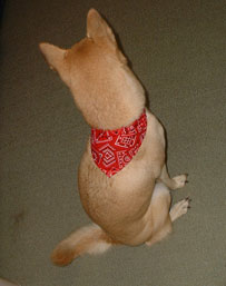 | 縞模様のTシャツだよ。 これも結構お気に入りなんだ! | バンダナも持ってるよ | |