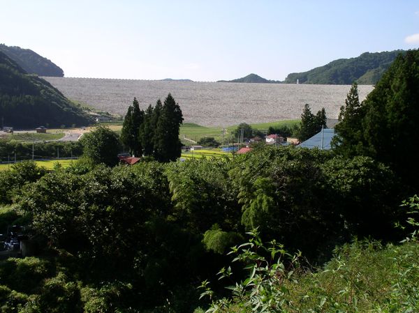 と、開けて見えるのは摺上川(すりかみがわ)に真新しいダムがある。ダム湖の名称は「茂庭っ湖」