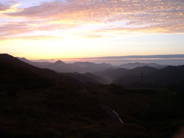 太陽が出ると、山が黒くなった。