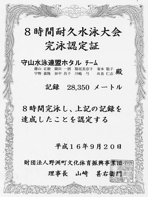 八時間耐久水泳大会 開催日 平成16年9月20日(月・祝) 時 間 8:00〜18:00(競技は9:00〜17:00) 場 所 温水プールすいむ8