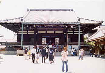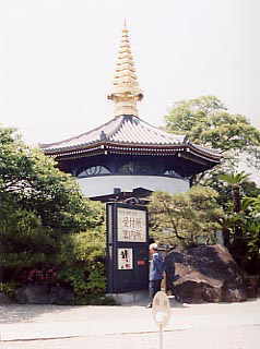 | 納骨や施餓鬼を受け付ける念仏堂。平成4年に落慶したそうで、六角形に金の相輪がこれまた華やかだ。街路からも塀越しに一番目立っている。中では、銀行か郵便局にもにた似た窓口に、納めるお骨を胸に抱いた人々がいくつも列をなしてした。お骨仏人気(?)はかなりのもののようだ。 | ||