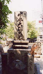 | 著名人のお墓が点在している一心寺。これは、文楽の初代竹本大隅太夫のお墓で、念仏堂の横にひっそりと佇んでいた。その他、八代目団十郎(歌舞伎役者であろう)や林家染丸(落語家であろう)、芸能界無縁墓なんかもあり、上方芸能の世界に生きた人々が眠るお寺としても縁があるようだ。念仏堂の裏手には、古いけれど、大きくてとても個性的な墓石が多く見られた。かつて盛隆を誇った大阪の名残りかもしれない・・・。 | ||