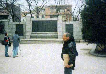 タプゴル公園の独立宣言の前で説明して下さる劉載晃さん。