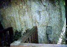 正長の土一揆 柳生の里で正長の土一揆で「ヲヰメアルヘカラス」と刻まれた疱瘡地蔵を探した。真夏だったので、汗がダクダクでた。地元の人に聞いても、わかりにくくなかなか探し出すことができなかったが、見つけてみれば、結構近くまで自動車で近づくことができる。 今は自然歩道が整備され、地蔵様もお堂ができて、まわりが整備されている。(写真上) が、写真がとりにくく、臨場感がなくなったような気もする。右下の少し黒ずんだ所が、碑文である。(写真下)