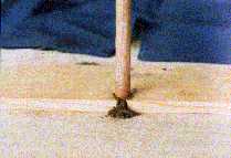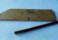 @杉の板(厚さ1p程度)。板のふちにV字の切り込みをいれる。幅4ミリ、深さ3〜4ミリ程度、V字のおくに皿状のくぼみ(直径1センチ、深さ2ミリ程度)をつくりヒキリウスをつくる。
