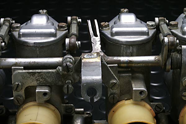 スロットルワイヤーの取付け位置が純正ともう1コ有り。おそらくフォーミュラか何かだと思われる。