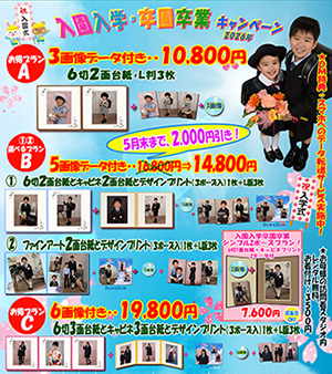 | 素敵な笑顔を未来に・・ 卒業入園入学写真の予約受付中! 七五三早撮りキャンペーン実施中! ★初宮参り,七五三のロケーション撮影 ご予約受付中!(大人気) 何処よりもお得で最高の写真を目指して20年! 当店はお客様の待ち時間ゼロ、完全貸切制です。 各種証明写真もお任せ下さい オーデション等もお任せ下さい。是非 ご検討下さ。 |