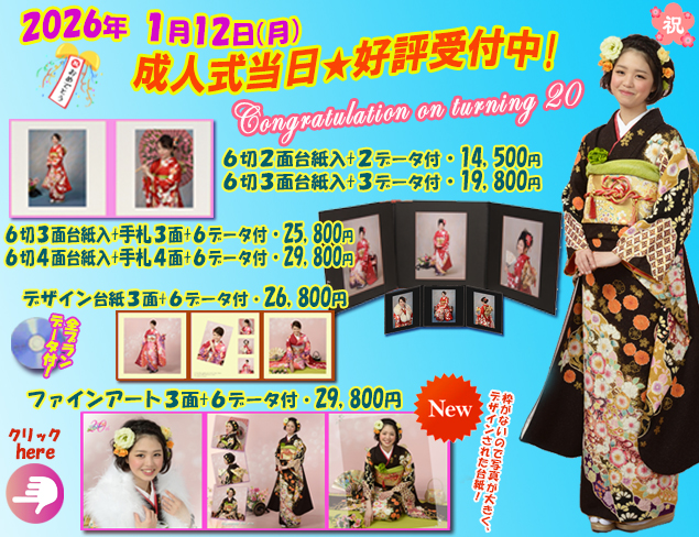 成人式 卒業記念 ご予約受付中! 経験豊富なスタッフによる着付けと 人気のカメラマン にお任せ下さい。 ★成人式なんでも 相談 受付中! |