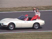 昼前に、往年の名車に乗って、F1パイロットのパレードです。