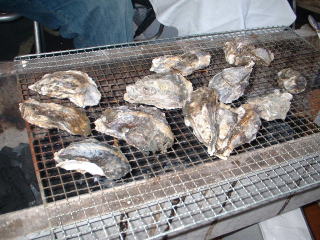 | 牡蠣剥き大会もあります。これは漁師さんのデモンストレーション。プロの速さはすごい!生は剥きにくいんですよね。 | |