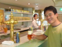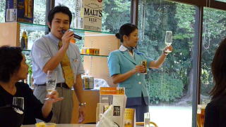 余興?で、缶ビールの美味しい入れ方のレクチャーもありました。