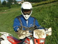 | 三○へ向かう土手。辻@さん、草むらの下の泥に引っかかりハイサイドぶっ飛び!くねさんとぺの・・・か? |