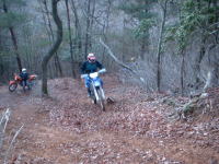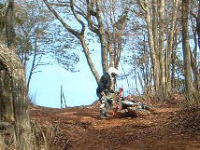 この日は、前日の雨で、路面は濡れています。しかも、晴れたかと思えば、しぐれるし。風も強い。これから向かう山も、ガレ場で、岩が滑るんだろうな〜。突撃したのは、Kato、がおーさん、IKEさん、ミチちゃん。やはり、皆苦労してます。Katoは、煮詰めたセッティングがばっちり決まり、極低速で、トコトコ滑ることなくガレ場を登っていきます。「おお!苦労してセッティングした甲斐があったなぁ・・・」でも、下手したら、乗ってる人間落ちても、バブルアール、一人で登っていってしまいそう。