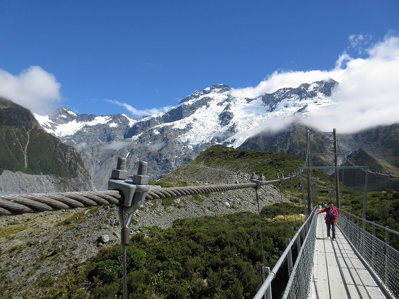 2015年2月12日マウンドクックは現地名は「アオラキ」。 アオラキのふもとのフッカーバレーは渓谷になっており 宿舎ハーミテージからフッカーハレー渓谷へトレッキングロードが整備されています。 3つのつり橋を渡ると氷河の水をたたえたフッカー湖につきます。 ここからは氷河が見え、氷河の切れ端がフッカー湖に浮いているのが見えます フッカーバレー渓谷は地球の歩き方ニュージランド編では、全ニュージーランド中お勧めコース3位にランクされています。 |