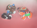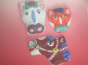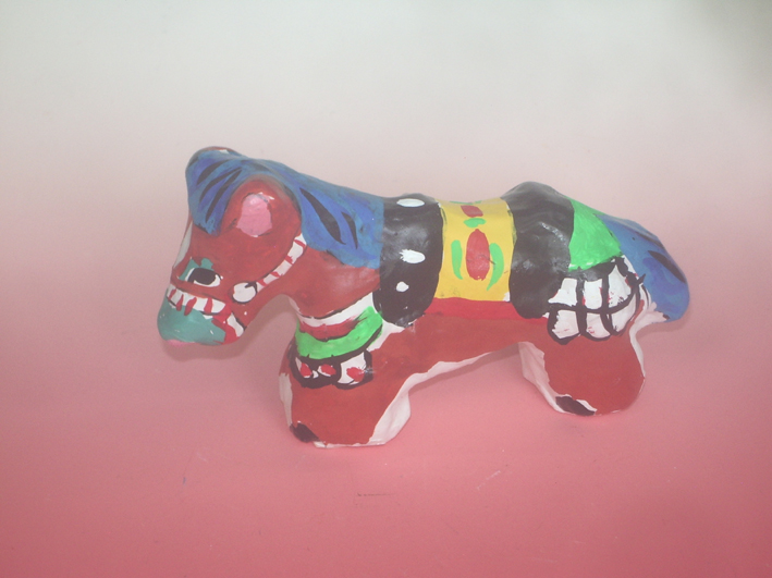 張り子とは 型に和紙を張り重ね、型抜きをしてつくる郷土玩具で、 和紙の特性を生かした伝統工芸の一つです。 「須磨張り子」は1984年に吉岡武徳が張り子に魅せられて、 自宅の須磨で作り始めた創作張り子です。