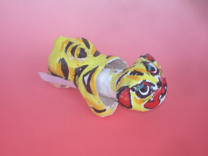 張り子とは 型に和紙を張り重ね、型抜きをしてつくる郷土玩具で、 和紙の特性を生かした伝統工芸の一つです。 「須磨張り子」は1984年に吉岡武徳が張り子に魅せられて、 自宅の須磨で作り始めた創作張り子です。