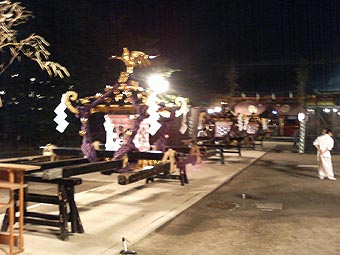 お社の前に並ぶ三基の御神輿私は神様を信じない人間ですが、有る事件の後は(事件といってもたいした事ではないのですが)ここを通るたびに観音様にお参りをして賽銭を上げています。もしかしたらそのご利益か? 観音様が気を利かせてくださったか?? 関西からのお上りさんにしては、ちょっと珍しい写真が撮れました。さらに表通りの方へ進むと、午前3時だというのに既に法被姿の若い衆や世話人のおじさんたちが大勢待機しています。通りすがりの私にまでその活気や緊張感、今から始まるお祭りのわくわく感がびんびん伝わってきます。